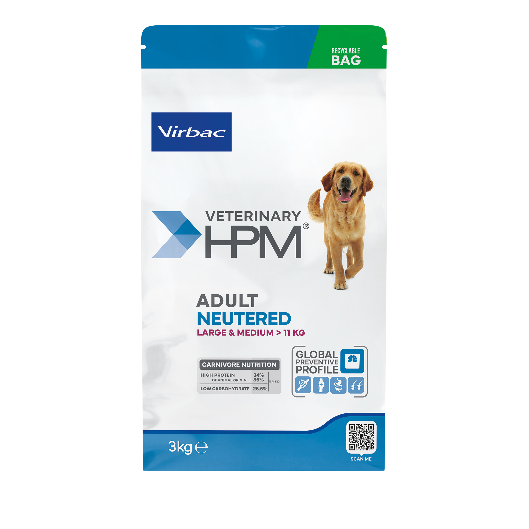 VIRBAC HPM ADULT NEUTERED DOG LARGE & MEDIUM – Control de Peso y Saciedad – 3 kg