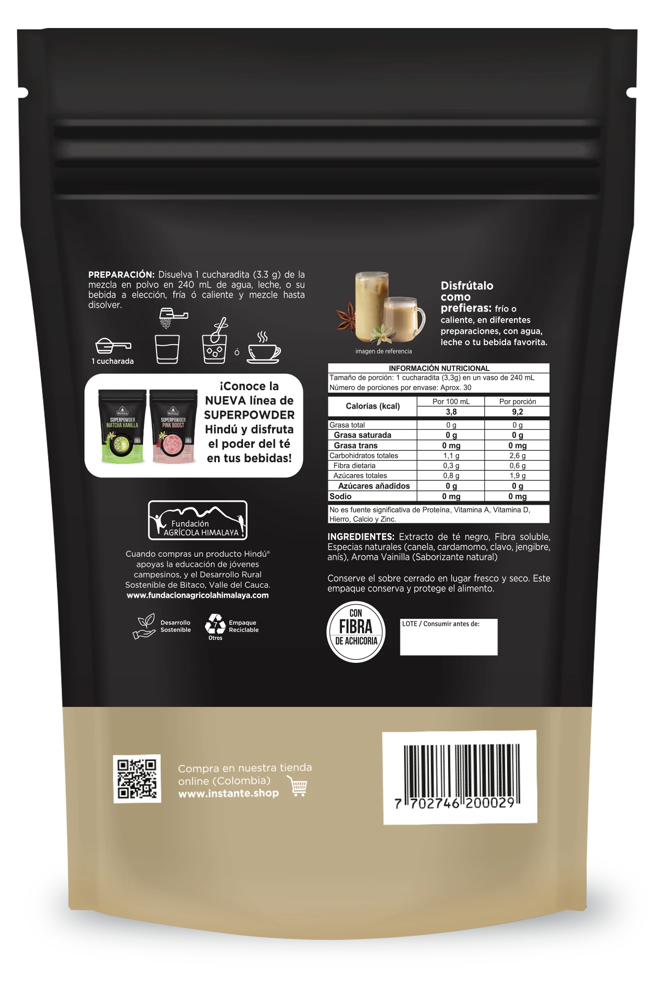 Productos » Superpowder Chai Vanilla – Mezcla en Polvo de Té Negro con Especias y Sabor a Vainilla – Hindú – 100 g
