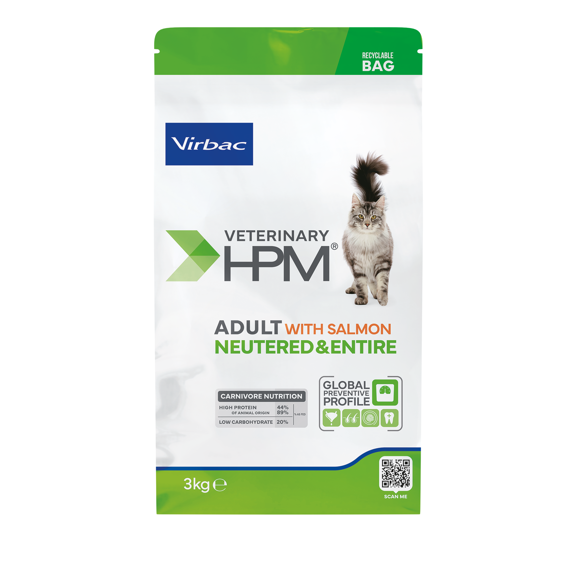 VIRBAC HPM ADULT WITH SALMON NEUTERED & ENTIRE CAT x 3kg MASCOTAS